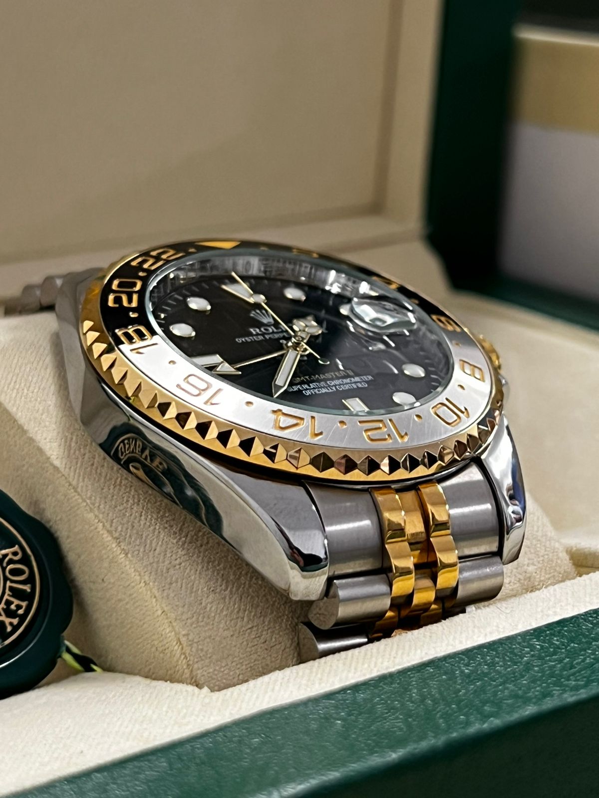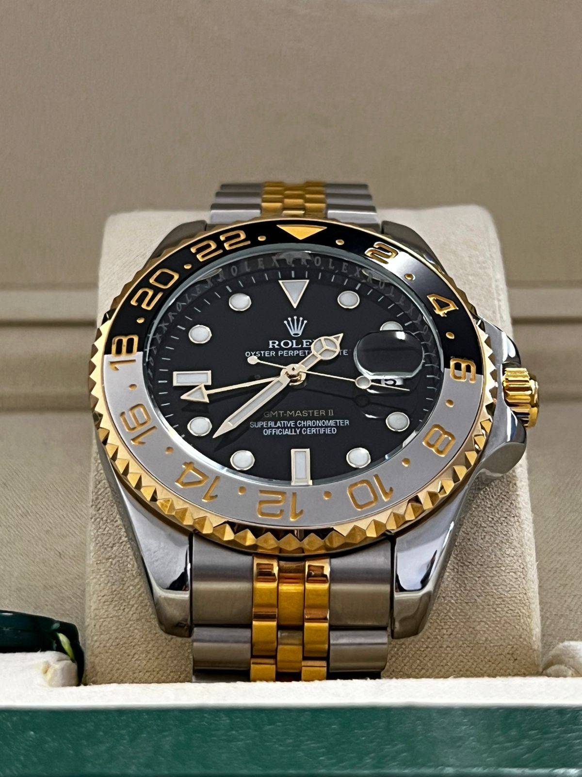 The Rolex GMT-Master II "Zombie Bumblebee" exudes a rare blend of beauty and luxury, combining the iconic craftsmanship of Rolex with a daring, modern twist. Its vivid black-and-yellow design commands attention, while the meticulous detailing and high-grade materials showcase the refinement and prestige expected from a Rolex. This unique timepiece doesn’t just tell time—it makes a statement of bold elegance and exclusivity on the wrist.