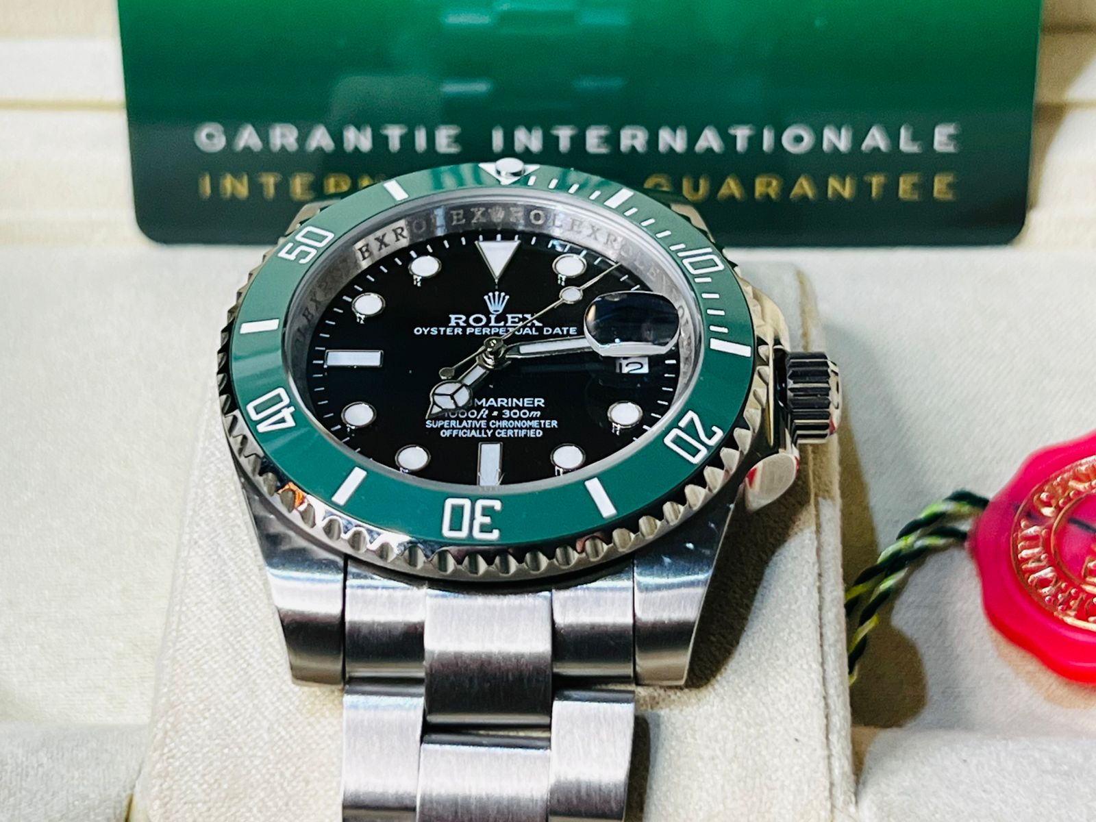 The Rolex Submariner Date “Starbucks” is a modern icon in the world of luxury timepieces. Featuring a striking black dial paired with a green Cerachrom bezel insert, this model earned its nickname from its bold yet refined color combination