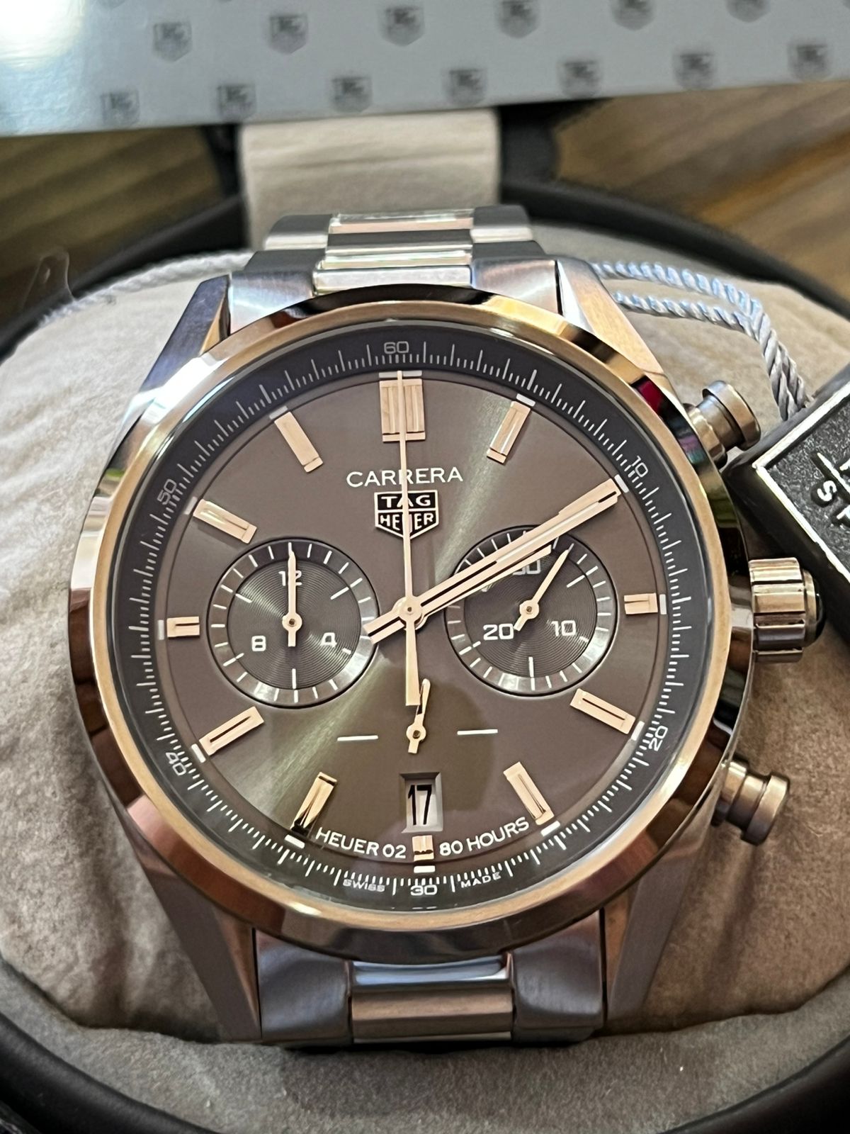 The Carrera 02 Chronograph blends precision engineering with timeless sport-luxury style.
